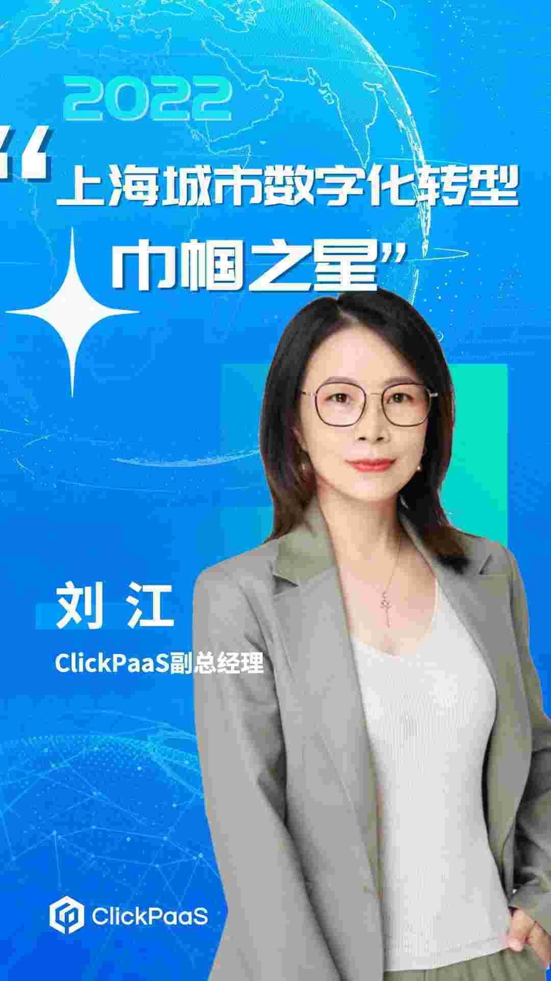 上海爱湃斯科技有限公司副总经理刘江女士凭借多年服务政务系统的经验以及自身对数字化领域的探索,,,,,,,,,,躬行实践,,,,,,在上海积极推动数字化转型的过程中发挥了其个人最大的推动作用,,,,,,,最终实力荣获2021“上海城市数字化转型巾帼之星”荣誉称号。。。。。。。